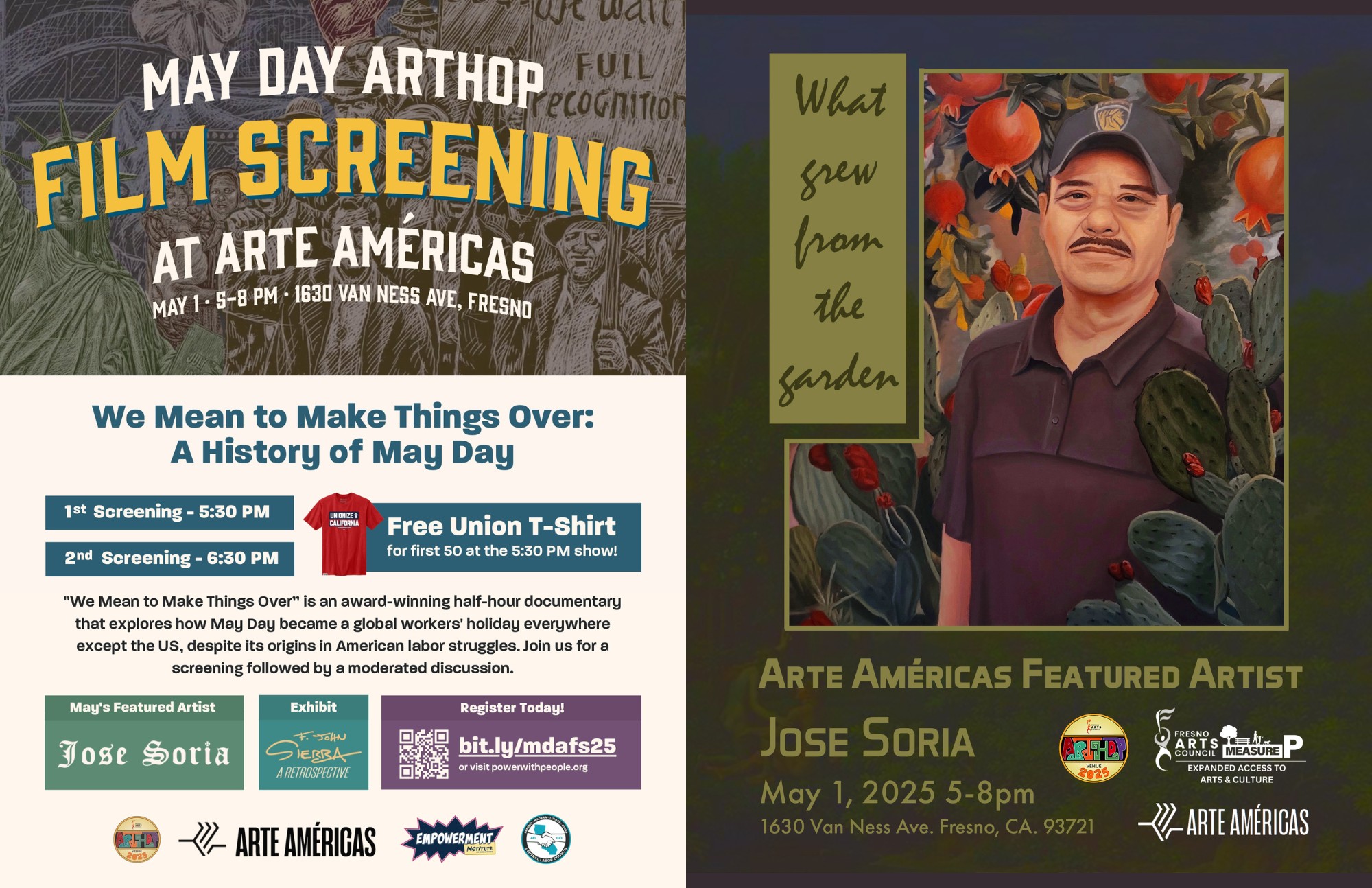 For May ArtHop we’re partnering with the Central Labor Council to celebrate May Day! Enjoy two screenings of “We Mean to Make Things Over”, an award-winning half-hour documentary that explores May Day as a global worker’s holiday. Moderated Discussion to follow.